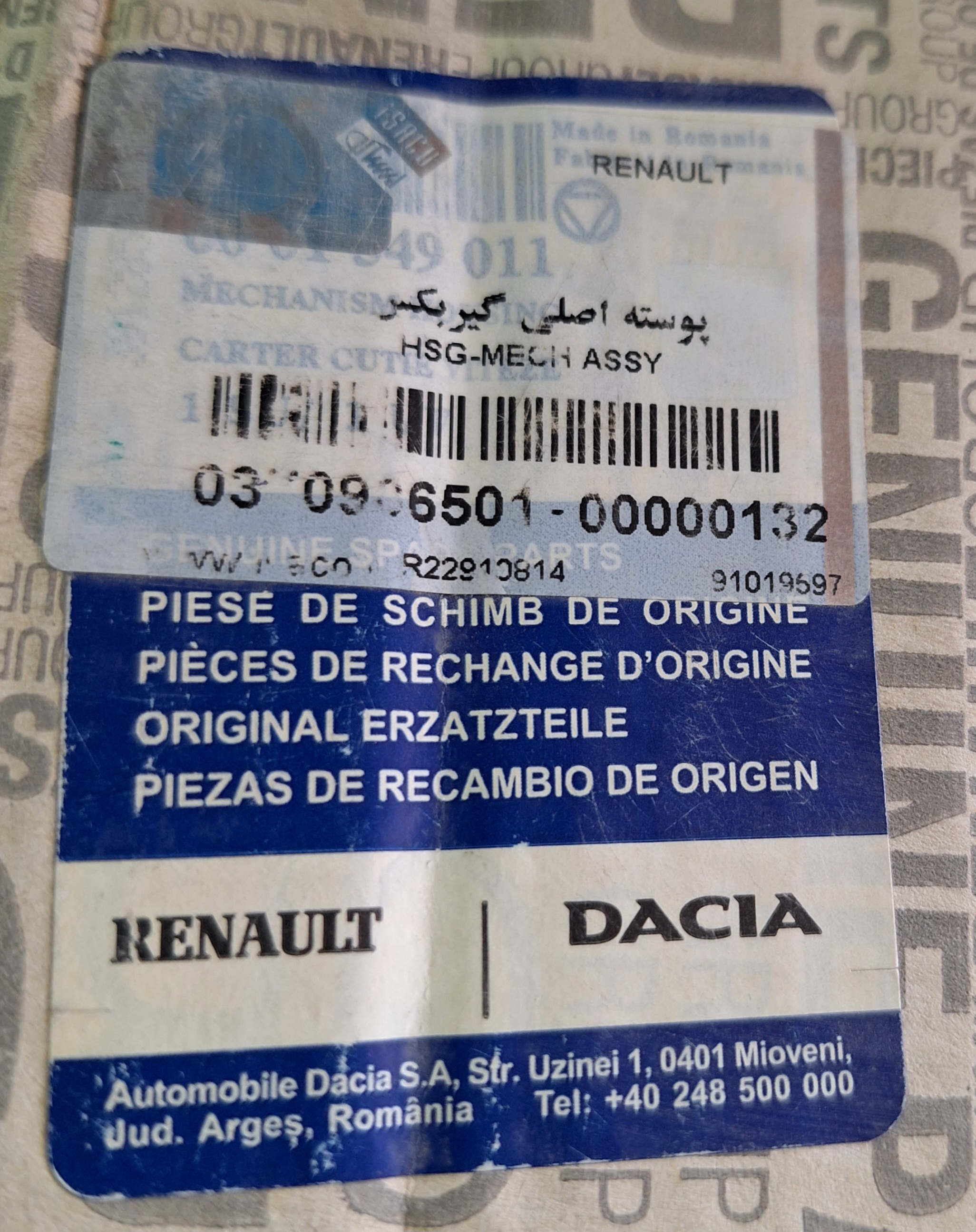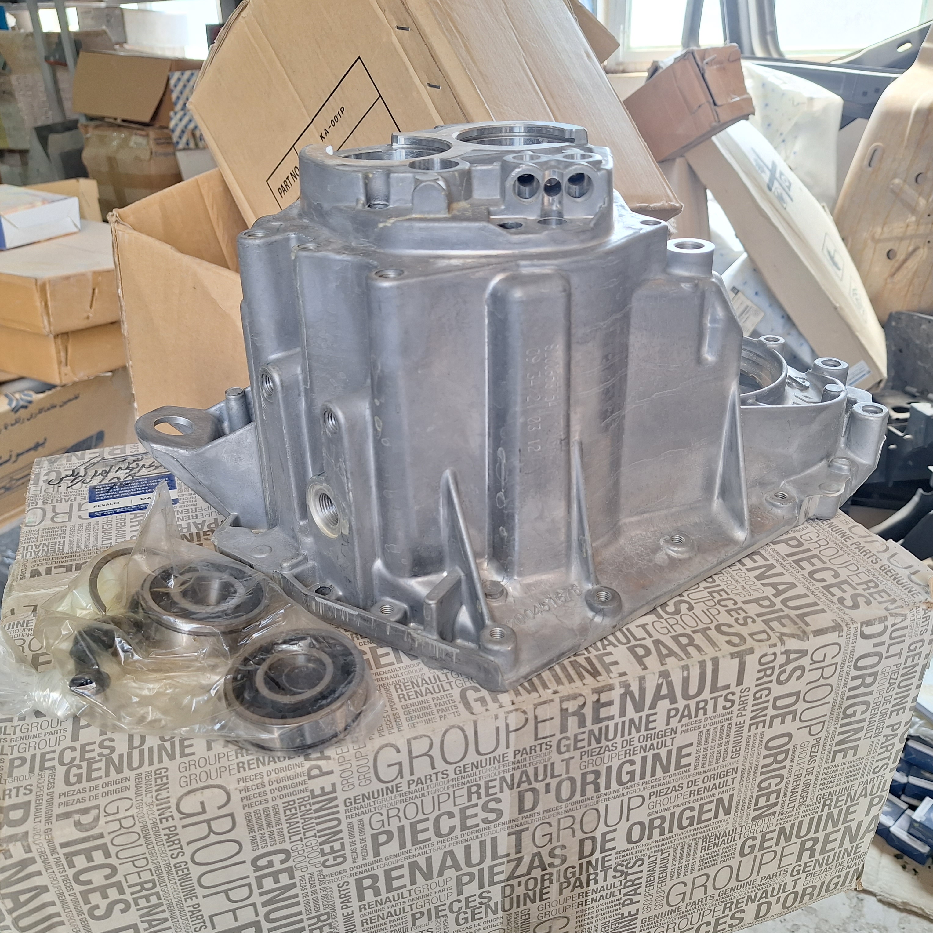 مجموعه پوسته وسط گیربکس ال۹۰ قدیم JH3 اصلی اورجینال ، بسته بندی رنو با لیبل شرکت به همراه بلبرینگ های دوقلو